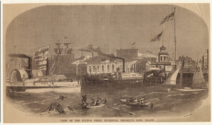 | Engraving of Fulton Landing in 1857 by William J. Peirce from the NY Public Library |